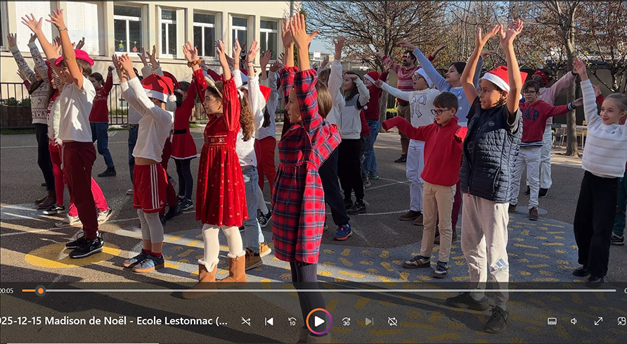 Vendredi 12 décembre 2025, tous les lutins du Père Noël étaient réunis dans la cour de l’école Lestonnac pour un Madison de Noël réjouissant !